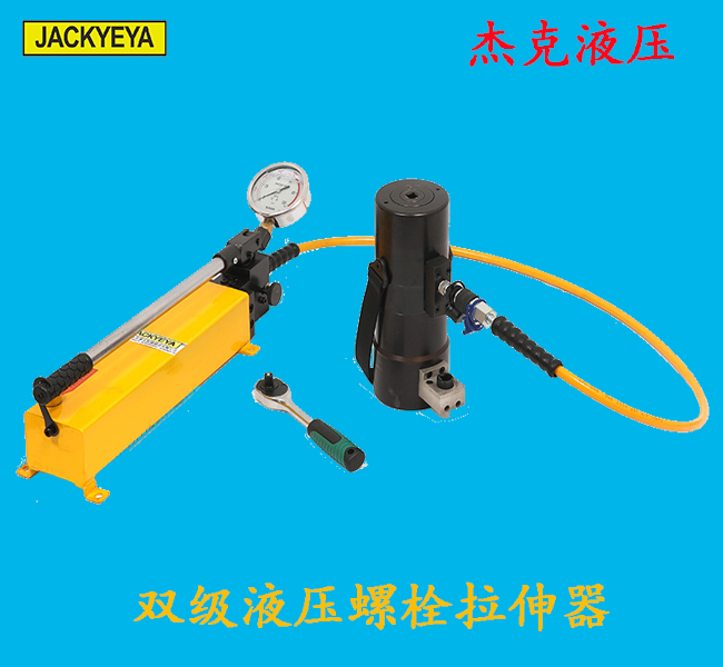 液壓螺栓拉伸器主要用于各種規(guī)格螺栓的定值緊固和拆卸,液壓螺栓拉伸器的工作原理是利用液壓油缸直接對(duì)螺栓施加外力,使被施加力的螺栓在其彈性變形區(qū)內(nèi)被拉長(zhǎng),螺栓直徑微量變形,從而使螺母易于松動(dòng)。液壓拉伸器安裝螺栓中軸線的位置,用于對(duì)螺栓進(jìn)行軸向拉伸,實(shí)現(xiàn)螺栓需要的拉伸量,而正是螺栓的這種拉伸量決定了螺栓緊固所需的夾緊力。螺栓受到拉伸時(shí),螺母會(huì)與法蘭接觸面脫離開來,液壓拉伸器下端有一個(gè)開口,供操作人員人工轉(zhuǎn)動(dòng)螺母,通常螺母的轉(zhuǎn)動(dòng)是通過一根金屬撥棍來撥動(dòng)六角螺母外的一個(gè)撥圈來實(shí)現(xiàn)的(或直接撥動(dòng)圓螺母)。卸掉液壓拉伸器中的油壓后,螺母和接合面緊貼,從而將螺栓的軸向形變鎖住,也就是將剩余的螺栓載荷鎖在螺母里。對(duì)螺栓施加的載荷與液壓缸中的油壓成正比關(guān)系,這樣的設(shè)計(jì)能夠非常精確地留住有效載荷。由于載荷直接施加在螺栓上,且所有作用力都用于螺栓拉長(zhǎng),因此載荷產(chǎn)生所需的空間可以達(dá)到最小。